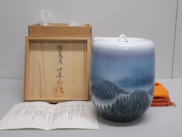 - 藤井朱明 代表作 朝日 水指 木の葉技法 有田 朱明窯