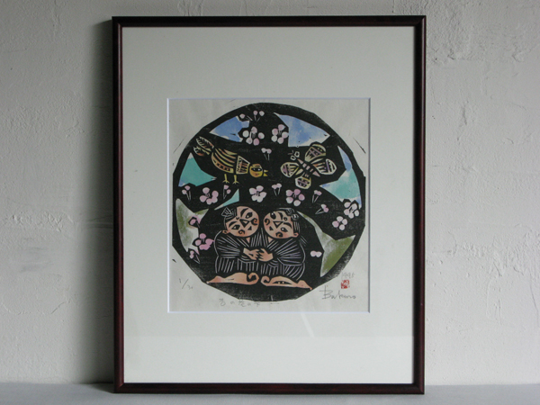 - 森 貘郎 杏の花の下 もりばくろう 木版画