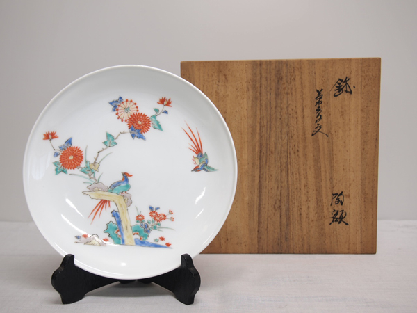 - 九谷 名工 三ツ井為吉 造 色絵 花鳥 飾皿