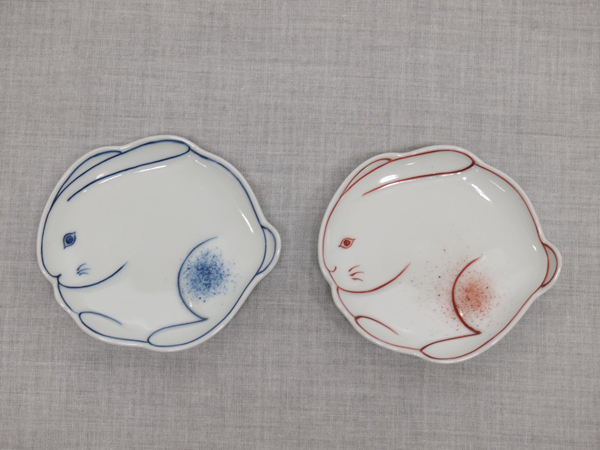 - 源右衛門窯 紺朱吹墨兎型小皿 有田焼