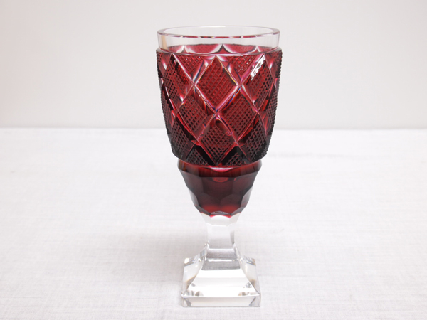 - 復元 島津 薩摩切子 色被せガラス 脚付杯