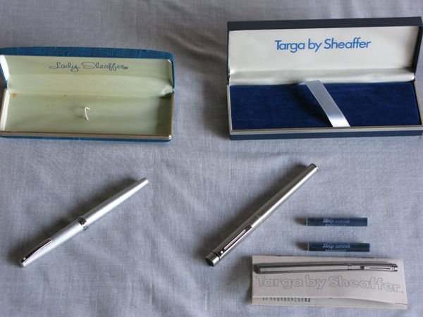 画像の筆記用具はケースと別々に保管されていました。パーカーのケースの万年筆はシェーファーの物です。